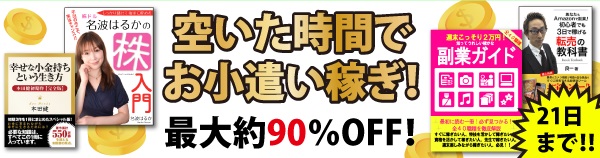 対象作品は、『週末こっそり2万円 知ってうれしい確かな副業ガイド』(著=三武信夫)など、全て“お金”に関する内容の作品です。
